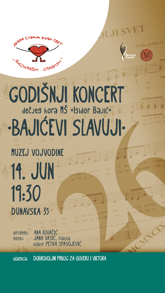 Позивамо Вас на Годишњи концерт дечјег хора МШ „Исидор Бајић“ Бајићеви славуји у суботу, 14. јуна у 19.30 сати (Дунавска 35).