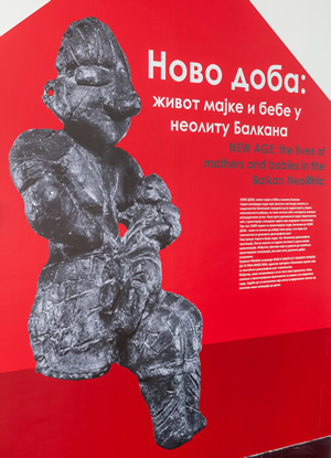 На изложби Ново доба: живот мајке и бебе у неолиту Балкана, су као аутори, испред Музеја Војводине, учествовали Лидија Баљ, археолог и Дарко Радмановић, археозоолог. Од експоната је изложена јединствена статуа Црвенокосе богиње са локалитета Доња Брањевина, која симболизује плодност целокупног живог света – како људи, тако и биљног и животињског света. Поред ње, изложене су и праисторијске дечије играчке са локалитета Гомолава, које на својеврсан начин сведоче о детињству у праисторији. Направљене од керамике, ове минијатуре својим обликом опонашају предмете који су коришћени у свакодневном животу. Међу њима је најбројније кухињско посуђе, али има и предмета који су употребљавани у посебним приликама као што су ритуални обреди и разне свечаности. Осим њих, међу играчкама се налазе и људске и животињске фигуре.