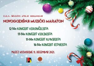 У суботу, 11. децембра, у Музеју Војводине (Дунавска 35) удружење грађана Креативно – едукативни центар Музички атеље организује Новогодишњи музички маратон на којем ће се представити најмлађи чланови удружења – млади виолинисти, клавиристи, челисти и гитаристи.